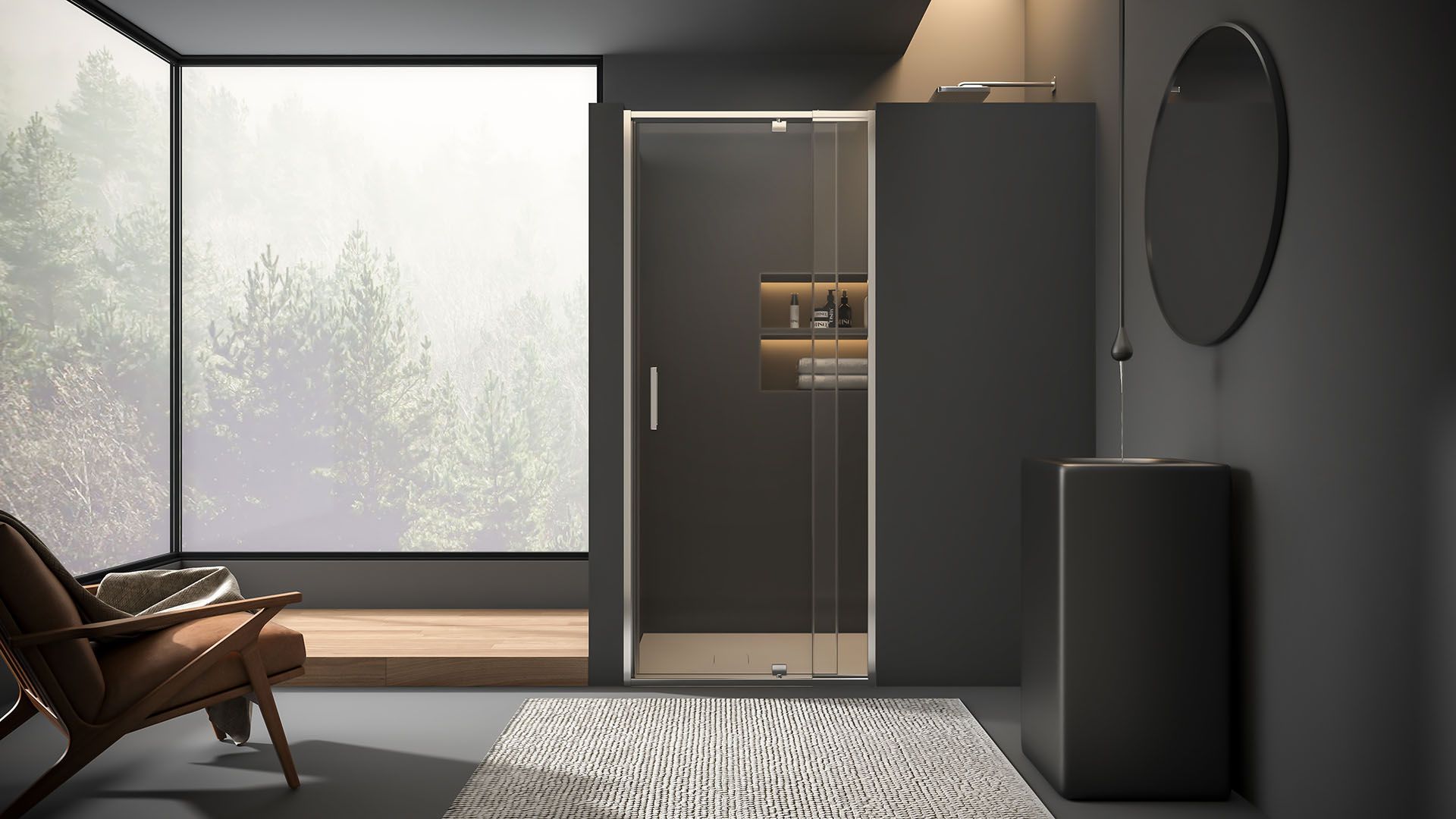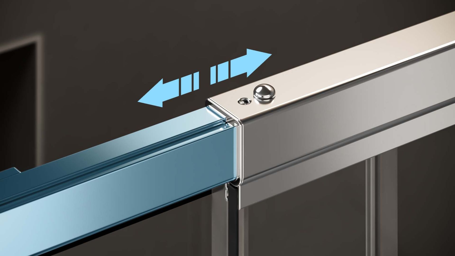 Telescopic top rail pivot door offering a large adjustment available in Shower door